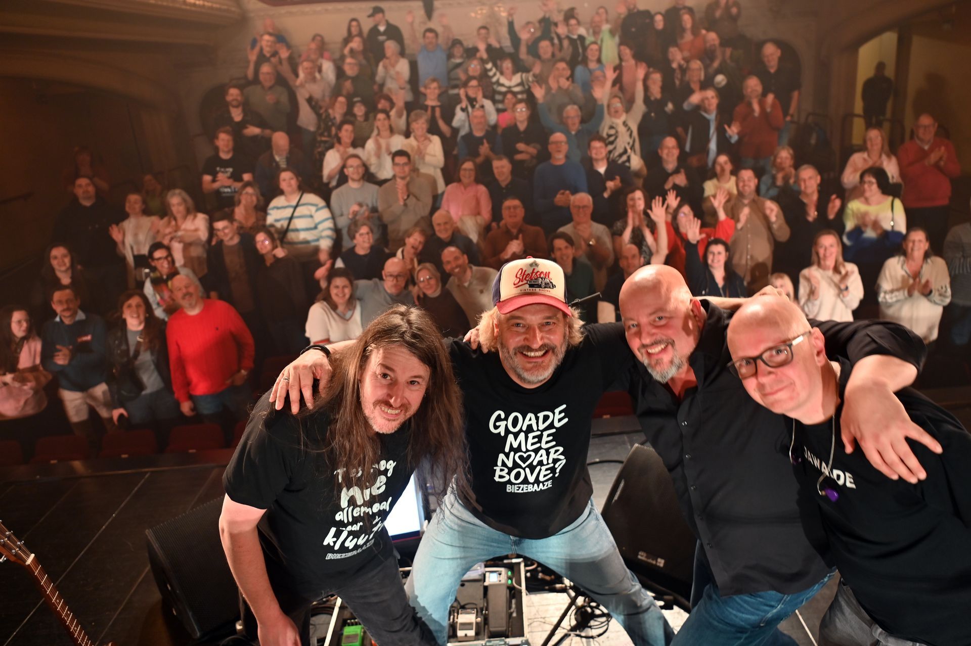 Dat album wordt aan het grote publiek voorgesteld op 18 april, in de Minardschouburg, de tempel van het Gents dialect. Dat wordt meteen ook de vuurdoop van het nieuwe Biezebaaze, want door corona zat echt optreden voor een groot publiek er tot nog toe niet in. “Maar dat heeft ook voordelen”, vindt Kurt. “Daardoor hadden we tijd om lang en veel aan de nieuwe nummers te werken. Al zeggen we het zelf: die zijn echt goed. En omdat wij van ‘den ouwe stempel’ zijn, zullen er twee nummers meer staan op de echte cd dan op de digitale versie. Wie online streamt, zal maar 13 nummers hebben.” Met die corona heeft de groep het overigens helemaal gehad. “We hebben tijd genoeg gehad, alle nummers zijn klaar, nu willen we gewoon zoveel mogelijk optreden!”